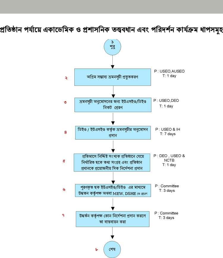 প্রতিষ্ঠান পর্যায়ে একাডেমিক ও প্রশাসনিক তত্ত্বাবধান এবং পরিদর্শন কার্যক্রমের ধাপ।